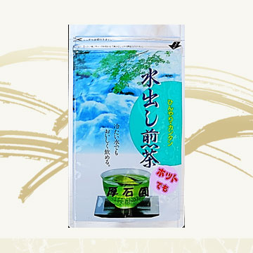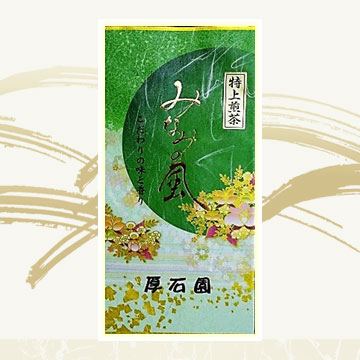 深蒸し煎茶は普通の煎茶より約二倍長い時間茶葉を蒸して作られます。茶葉の中まで十分に蒸気熱が伝わるため、青臭みや渋みがなく、お茶の甘みや深み、緑の水色(すいしょく)が濃いところが特徴です。そこに厚石園独自の火入れをし、お茶本来の甘さと深みをより一層引き出した製品に仕上げております。